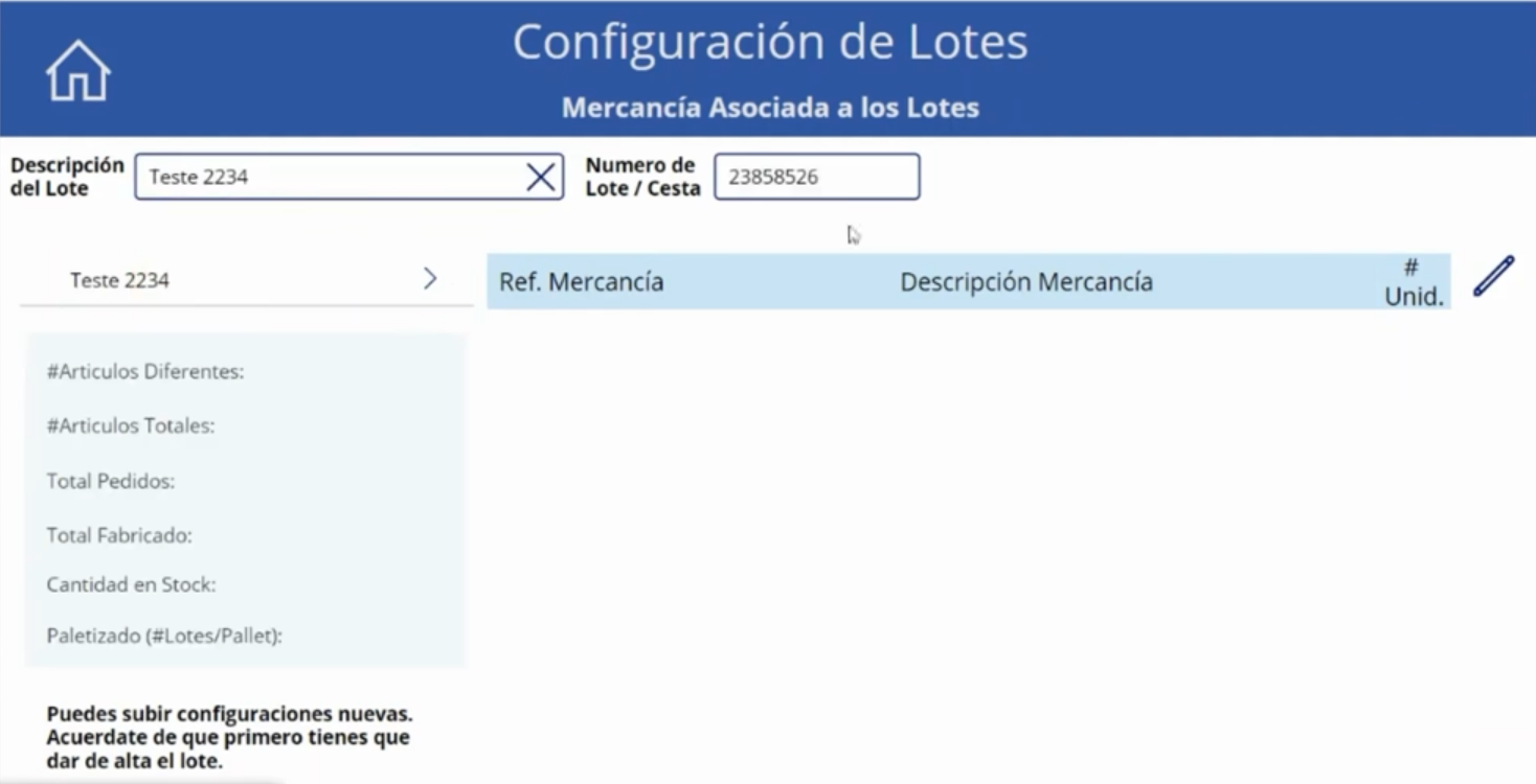 See app videoMobile application to record the receipt of merchandise at the operation level both by manual entry of the reference number and by reading the barcode. Record of the configuration of each merchandise when it is placed in the pack in which it is contained as palletized. Balance of receipt in relation to merchandise orders entered.