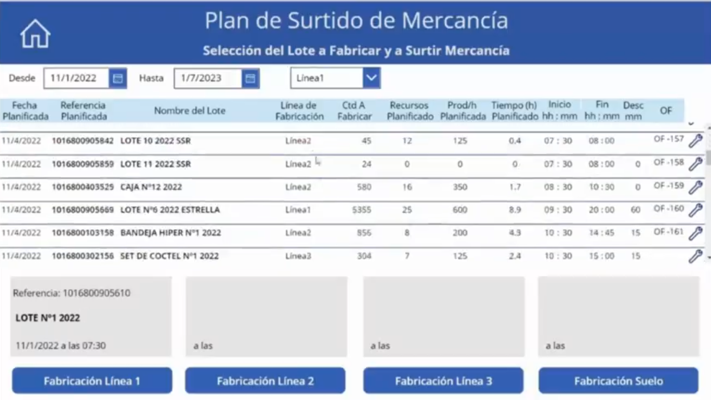 See app videoEstablishment of Kanban objective and, based on the historical or estimated productivity of the production line, assignment of the quantities of materials to be consumed in each kanban period. Variable objectives depending on how production develops. Sending via Outlook an Excel file with the data structure to copy and paste into the master stock management system.
